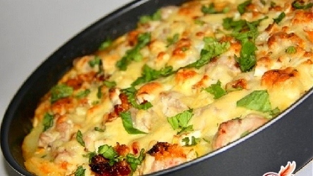 Cartofi la cuptor, cu piept de pui și cașcaval – Rețetă gata în 30 de minute
