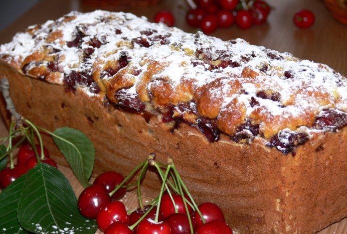 Chec cu vișine – Rețetă cu multe vișine, răspândite pe întreaga suprafață a feliilor de chec